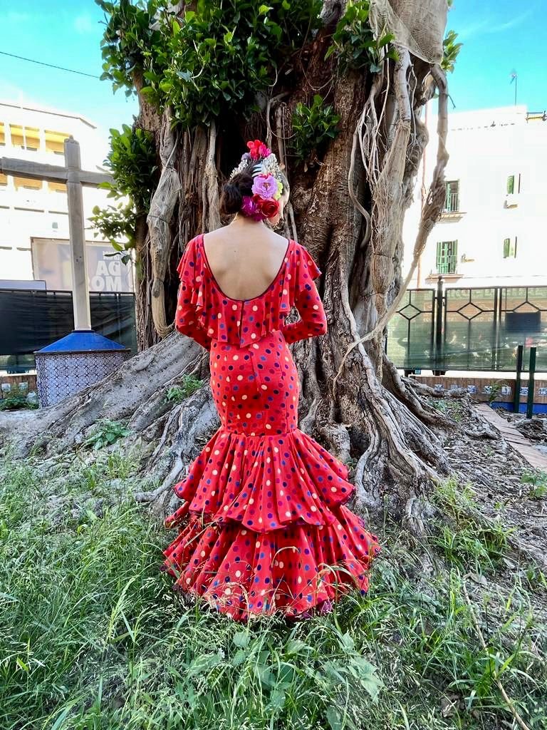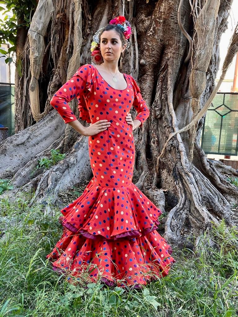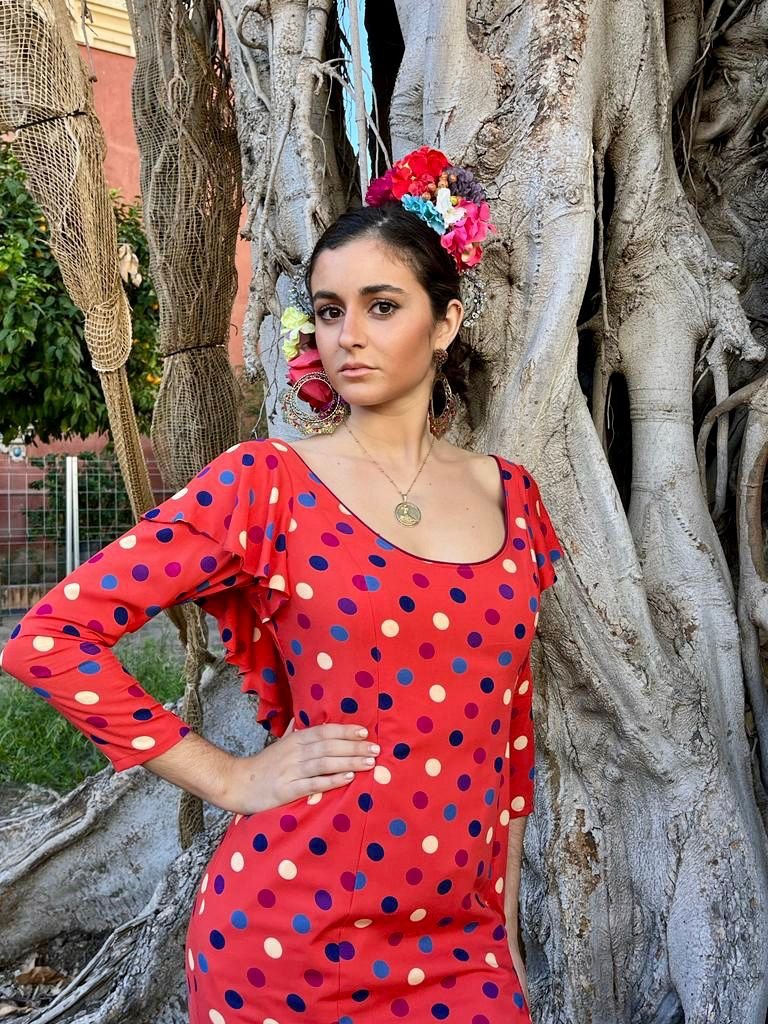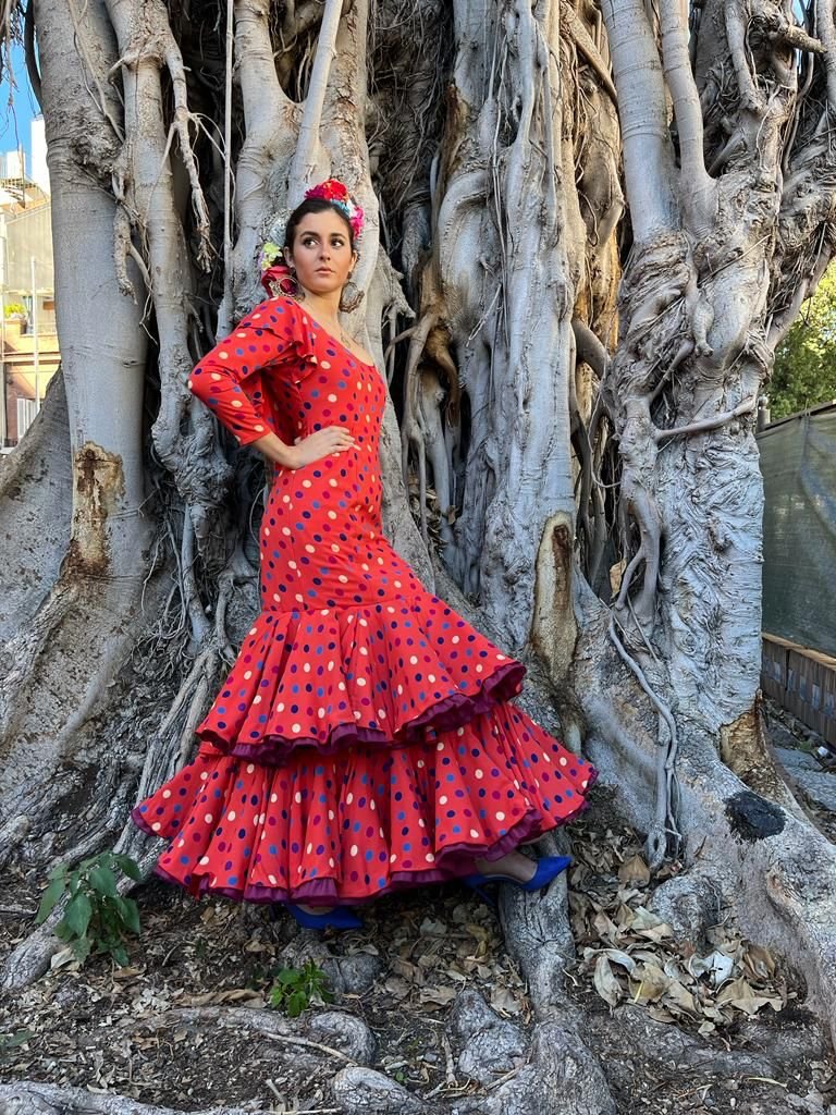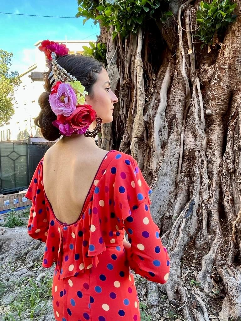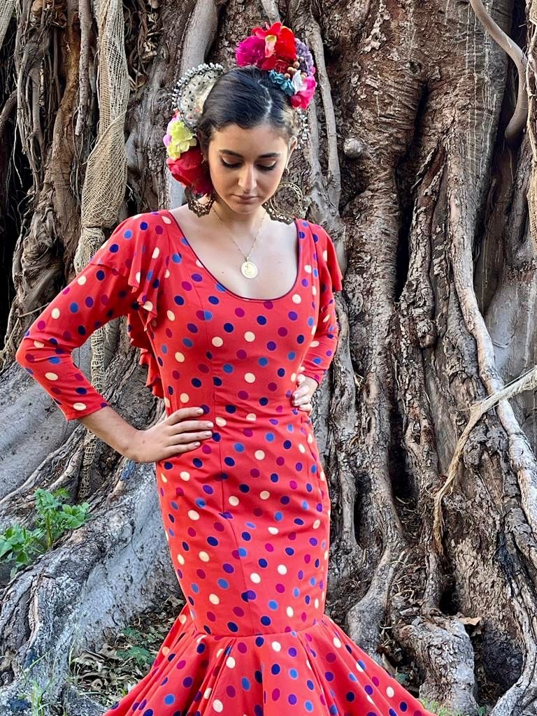 Vestido de talle bajo con 2 volantes dobles, con volumen en la falda. Manga larga con volantes en la sisa que baja al escote de la espalda. Disponible en diferentes colores.