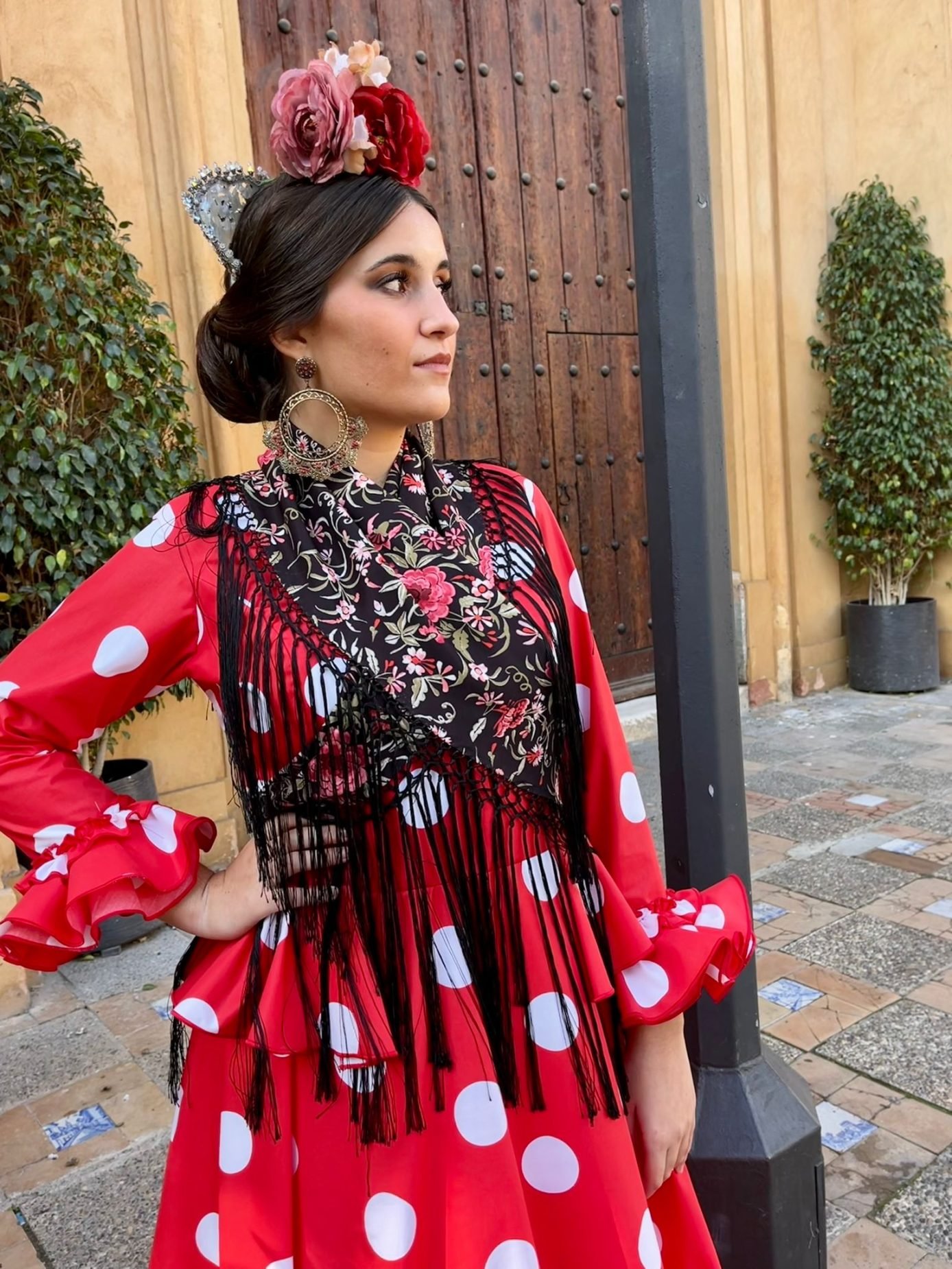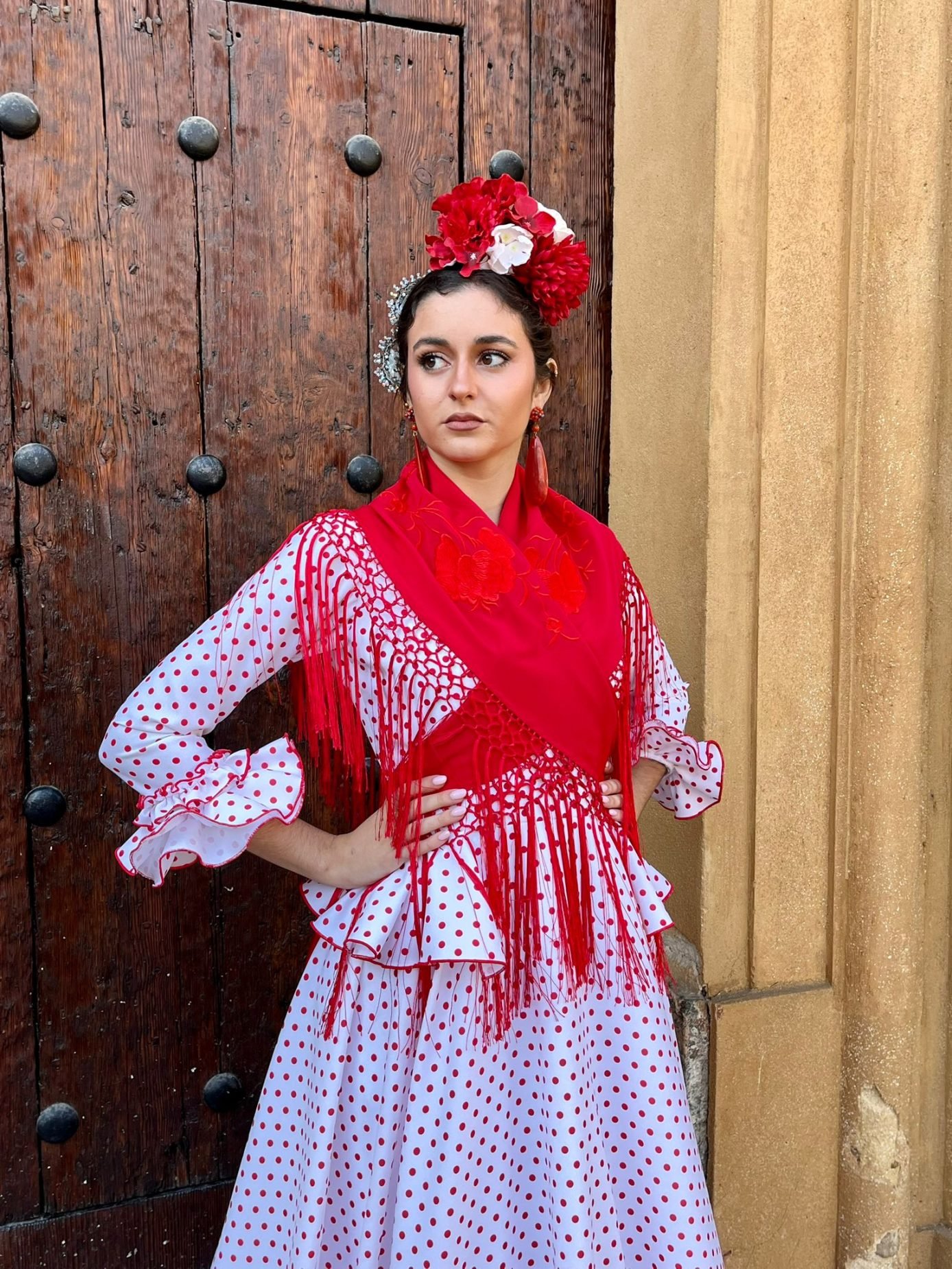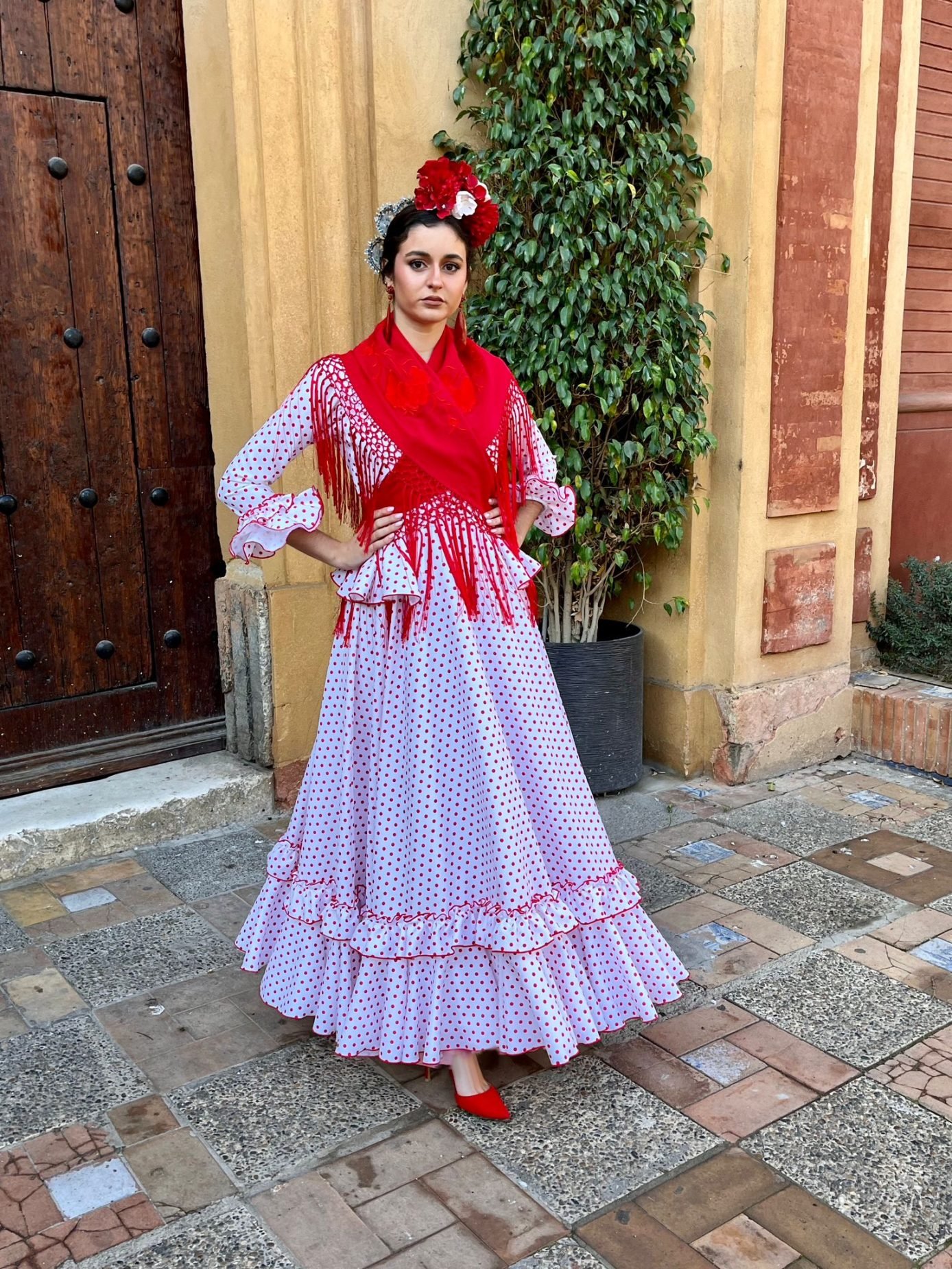 Última tendencia, talle alto  y volante en la cintura , manga larga con volantes en el puño. Disponible en varios colores. Para ferias y romerías.